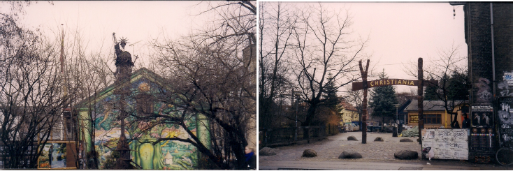 Recriações da Estátua da Liberdade, de Nova Iorque, formam o símbolo da chamada Cidade Livre de Christiania, criada numa antiga área militar da cidade de Copenhagen, na Dinamarca. A comunidade ocupou a área logo após os movimentos de maio de 1968. A experiência surgiu com fortes pendores anarquistas, consolidando-se como território que se propôs a fundar suas próprias leis. Aos visitantes se impuseram algumas regras internas para acesso e convívio. Caminhando para meio século de existência, Christiania abriga hoje cerca de mil moradores, recriando-se e adaptando-se a alguma ordem legal, fundiária e econômica, frente ao padrão de democracia, de direito e de mercado que se vive no país. Mas, o impulso original de vanguarda que animou o surgimento da experiência abraçou com pioneirismo temas novos, como o da sustentabilidade, e continua a projetar expectativas sobre o sentido de liberdade vivido ali.