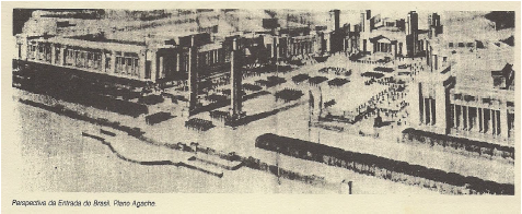 Depois da experiência haussmaniana do prefeito Pereira Passos, no início do século XX, o urbanista francês é quem faz o primeiro plano global para a cidade, em 1930. Trata-se de um Plano de Remodelação, Extensão e Embelezamento, bem ao gosto da moda francesa de então. O plano aproveita o desmonte dos Morros do Castelo de Santo Antônio, apagando definitivamente os vestígios arqueológicos do primeiro sítio da cidade. No aterro surgido, Agache propõe a construção da Entrada do Brasil. É aí que “as autoridades receberão as personalidades eminentes, que chegam por vapor ou hidroavião, as quais poderão desembarcar por meio de lanchas, diante da escada de honra emoldurada por duas colunas rostiais”. Agache percorreria depois várias outras cidades brasileiras, realizando planos semelhantes.