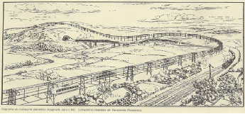 Monotrilho já deu o que falar. Há planos desde as primeiras décadas do século XX. O primeiro é de 1937, da Companhia de Transportes Planaéreos. Os mais recentes são do primeiro governo Chagas Freitas, com consultoria japonesa, e de Jaime Lerner. Lúcio Costa também considerou no plano da Barra a ligação da área com o Galeão através de monotrilho. Na mesma linha do transporte de massa aéreo, Paulo Casé propõe monobondes interligando os grandes condomínios da Barra. Sobre as linhas férreas, Sérgio Bernardes propõe “um mundo novo para a população favelada”. Uma auto-estrada suspensa sobre a ferrovia articularia um grande eixo polivalente onde haveria apartamentos populares, comércio, shoppings e equipamentos públicos. Os terraços inclinados dessa grande construção linear abrigariam hortas exploradas empresarialmente, para reforçar o abastecimento da cidade. Jaime Lerner, mais pragmático, estuda o entorno das estações de trem, propondo valorizá-las com shoppings e passarelas elevadas, a fim de resolver graves conflitos de acesso de pedestres às plataformas. As ciclovias, que andaram na moda na década de 1970, também tiveram a sua vez. Foram projetados vários circuitos cicloviários, formando uma grande rede na cidade com os respectivos bicicletários.
