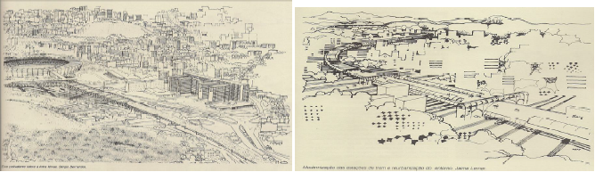 Na mesma época, Le Corbusier passa pelo Rio e, diante da movimentada topografia do sítio, propõe imensos edifícios ondulados serpenteando os morros e posados sobre pilotis num grande parque, onde havia bairros de ruas tradicionais, lotes, quadras e esquinas. Na cobertura desse enorme minhocão, uma autopista panorâmica.